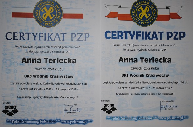 W dniu 14 marca odbył się coroczny Plebiscyt na Sportowca Roku 2016 Powiatu Krasnostawskiego i Miasta Krasnystaw. Wśród wyróżnionych przez kapitułę plebiscytu i czytelników Super Tygodnia znalazła się dwójka pływaków z Uczniowskiego Klubu Sportowego Wodnik Krasnystaw działającego przy Zespole Szkół nr 1 w Krasnymstawie. Ania Terlecka została najpopularniejszą zawodniczką w swojej kategorii, wybraną przez czytelników „Super Tygodnia”, jak również Najlepszą Zawodniczką Roku 2016, a drugie miejsce zajął Norbert Zacharzyński.